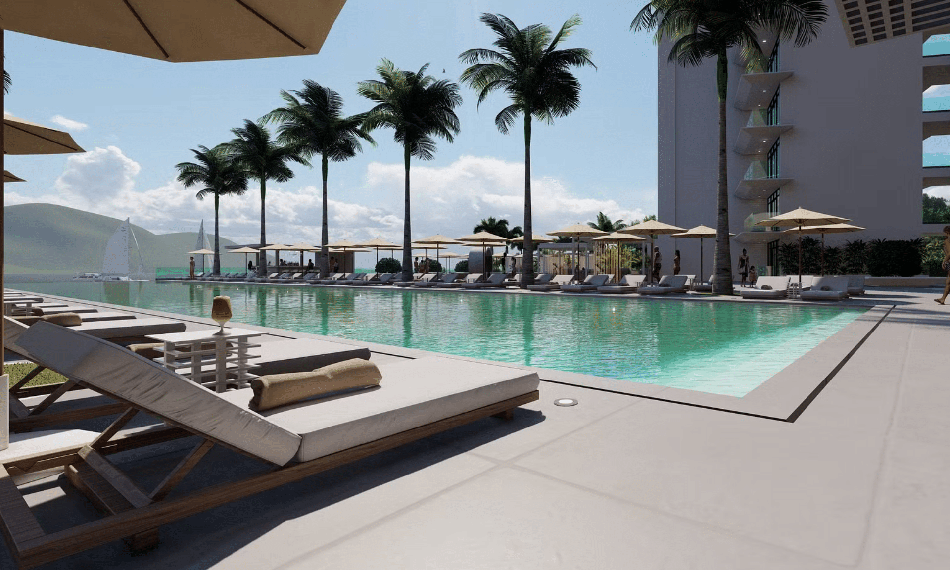 Découvrez l’Aqua Resort, complexe de luxe en construction depuis janvier 2023, prometteur dans le développement immobilier de Saint-Martin.